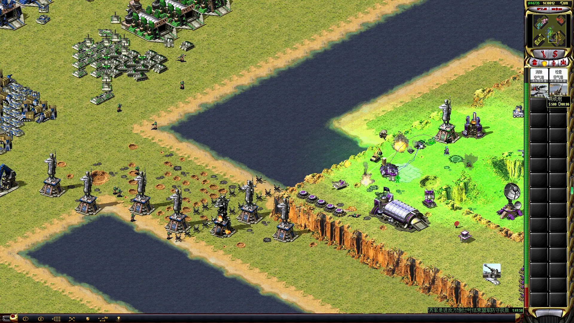 以延伸56为例,延伸上去后,注意延伸到没有人的地方,然后部署辐射,之后同时造碉堡,来打盟军的厕所。