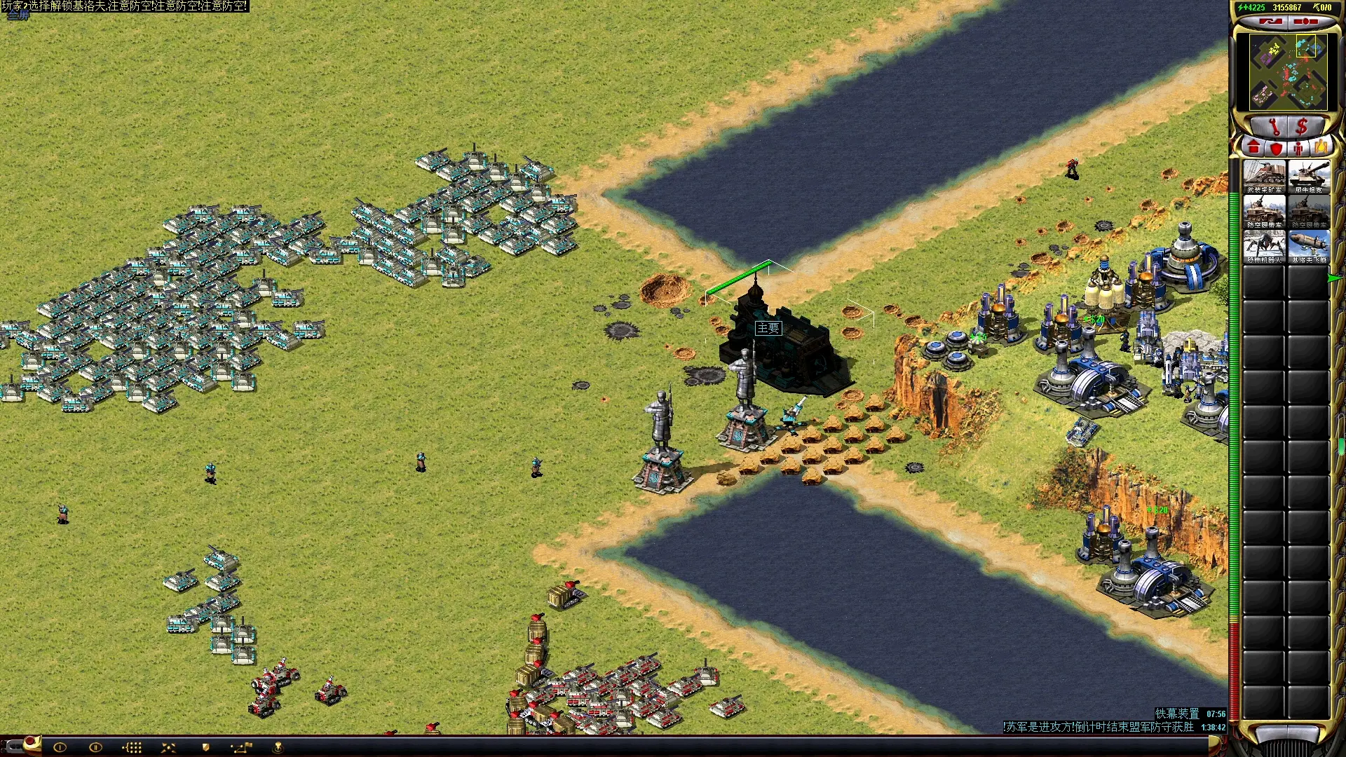 一般还会延伸到56门口前面的空区域,造重工,之后一直出辐射车或超天来消耗盟军。